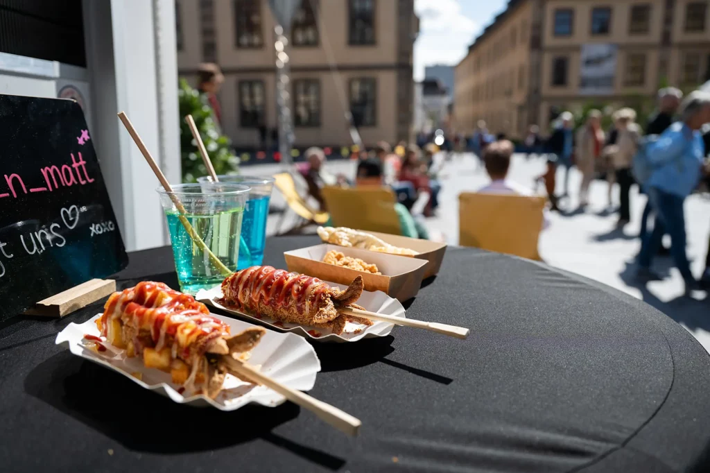 Auch die kulinarische Seite kam nicht zu kurz: In der Food & Chill Area auf dem Universitätsplatz genossen die Gäste internationale Spezialitäten, süße Leckereien und erfrischende Cocktails – mit Blick auf das bunte Treiben ringsum.